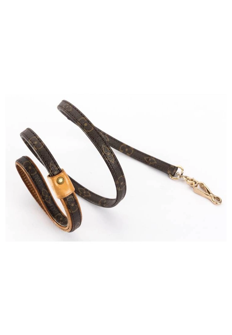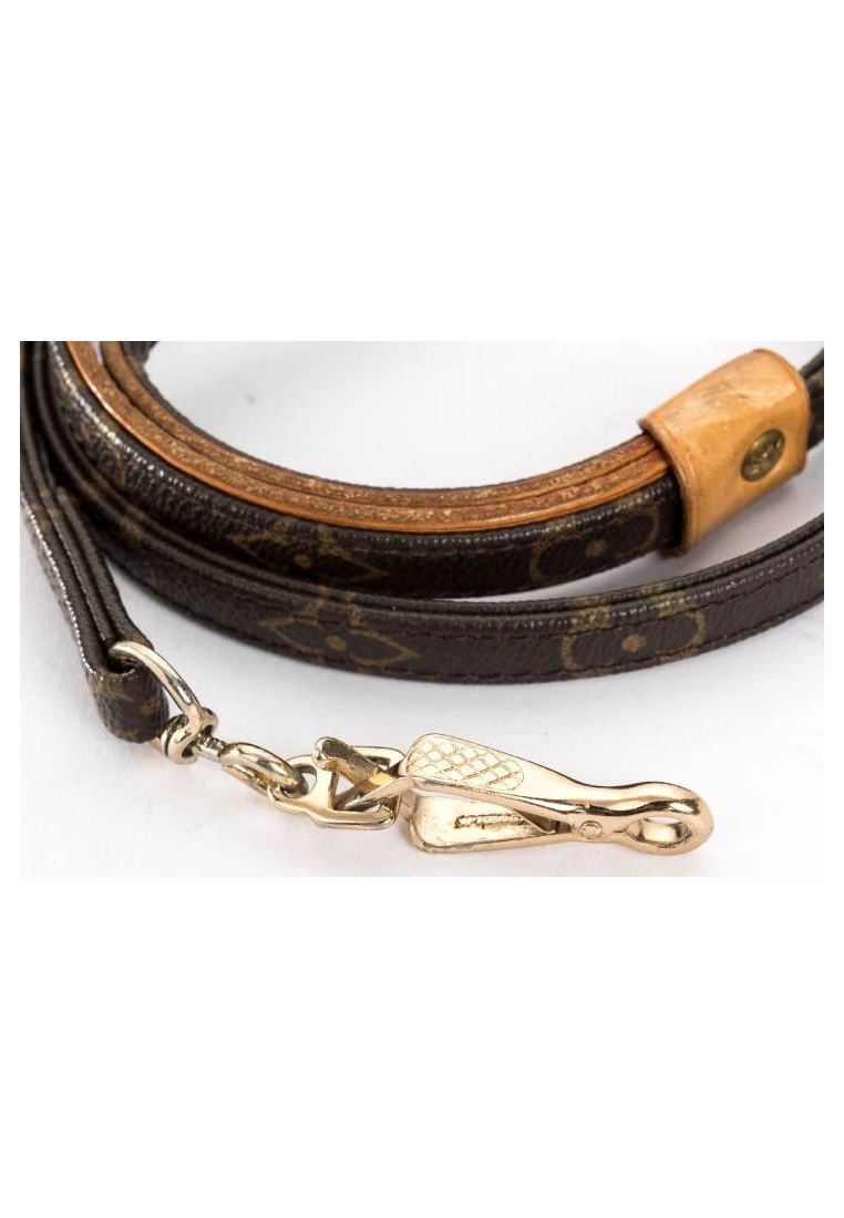 This Louis Vuitton ‘Baxter’ leather dog leash is for the pampered pooch who has everything. In the signature LV printed monogram leather, this leash has glossy gold-tone hardware, which snaps on to your pet’s collar. Accessorize your dog-walking outfit with a matching handbag.. The strap still in great condition. The pictures show exactly the items you will get.