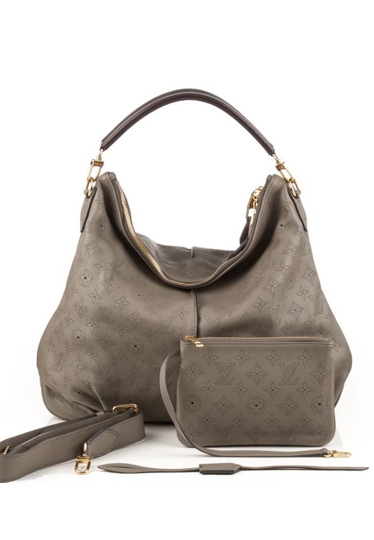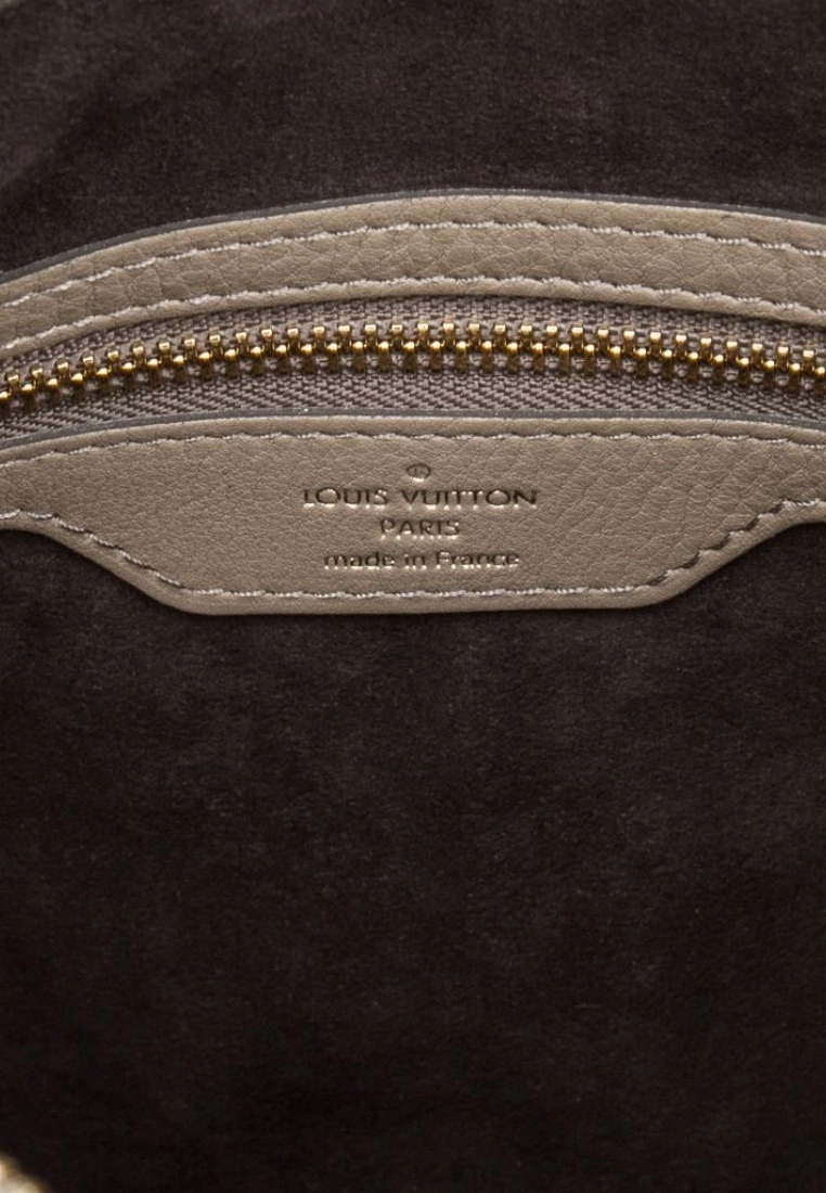 This is an authentic pre owned Taupe Perforated Mahina Selene GM (Large) Crossbody. The unforgettable design and exquisite cut of this Louis Vuitton shoulder bag lend a feminine and very chic look for everyday. This is an excellent, one of a kind shoulder bag that is also fabulously functional as an everyday bag for all of your everyday needs that call for the special accent of luxury and style from Louis Vuitton.