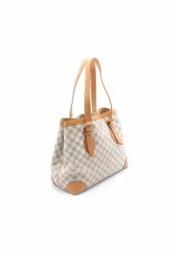 Pre-loved LOUIS VUITTON Hampstead MM white checkered Shoulder Bag Tote Bag PVC Genuine Leather white
