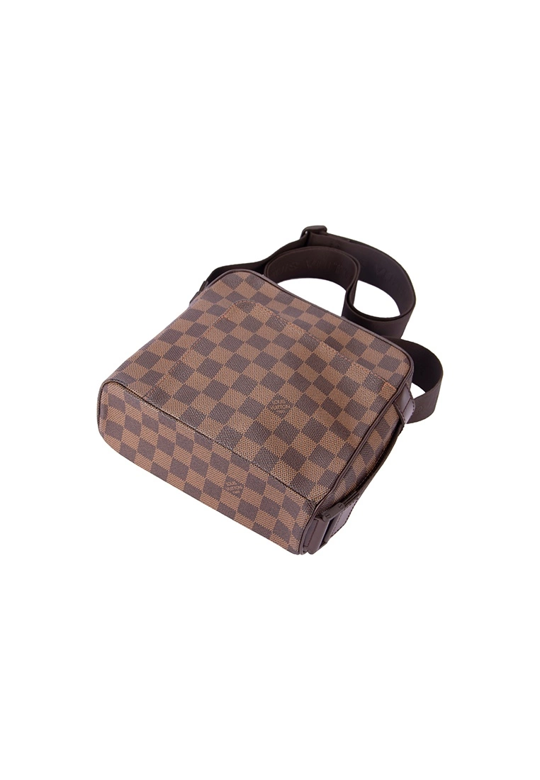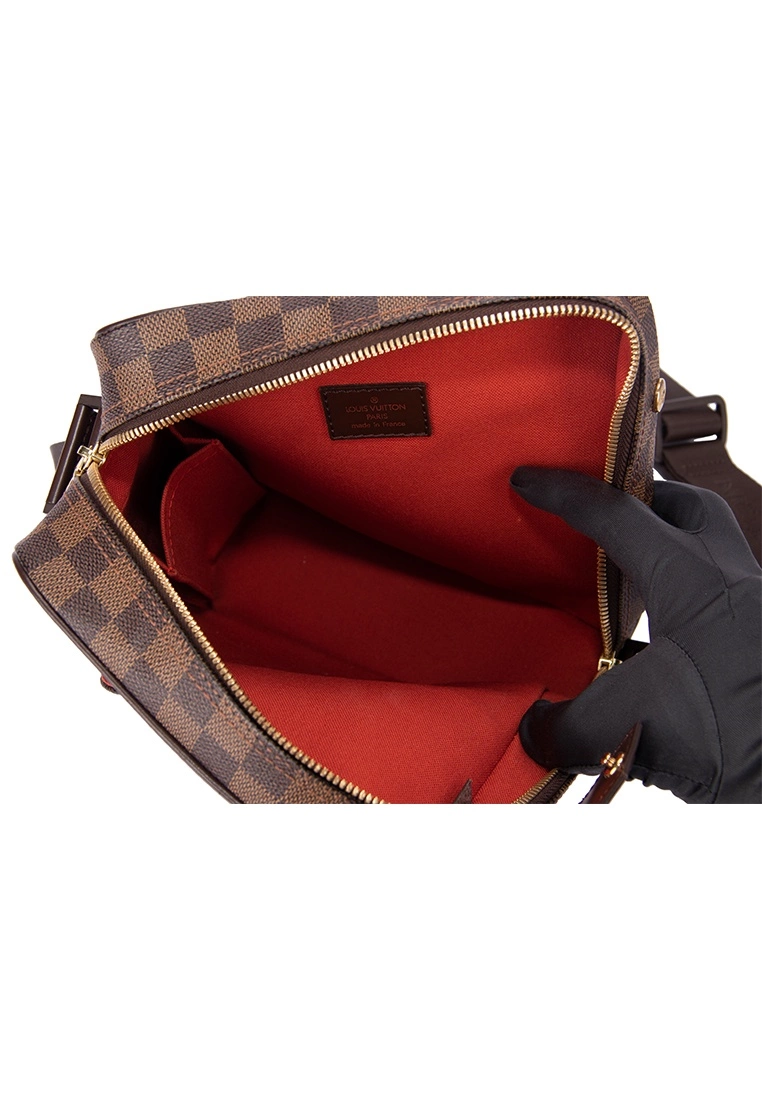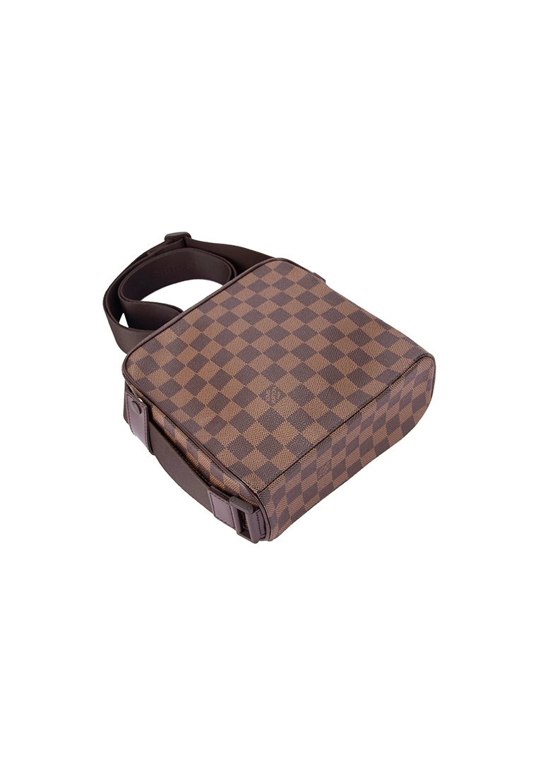 Louis Vuitton Damier Ebene Olav is crafted from signature Damier patterned canvas and features a single adjustable textile shoulder strap. Accented with brass-tone hardware, this messenger bag comes with a top zip closure and an outside patch pocket. The textile lined interior houses a flat pocket and a Louis Vuitton label. The bag is a sophisticated messenger-style handbag for the sophisticated man or woman. It is in excellent condition as there are no visible flaws, does not comes with dust cover or tags.