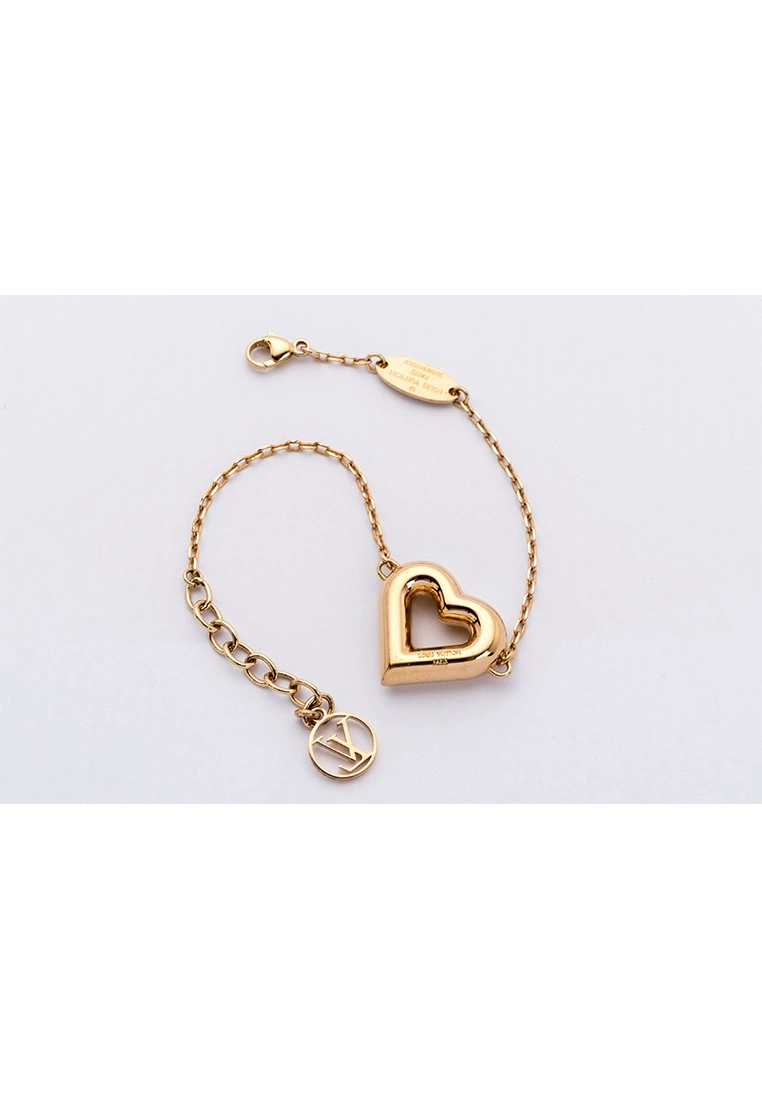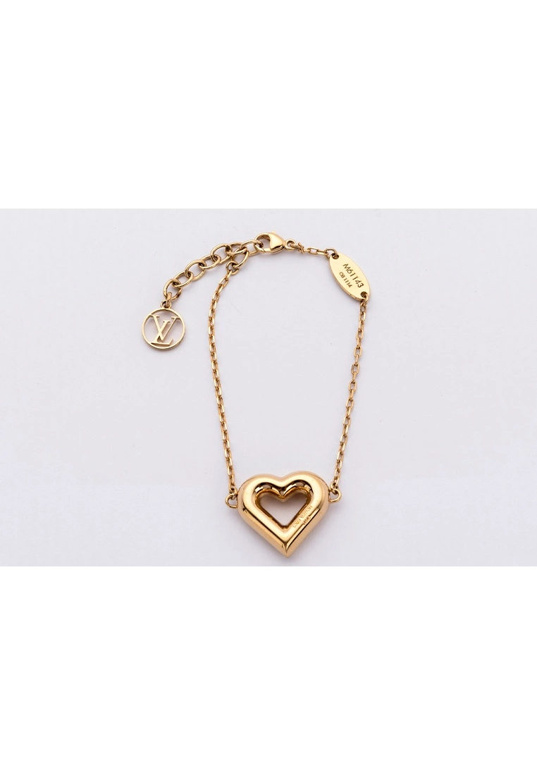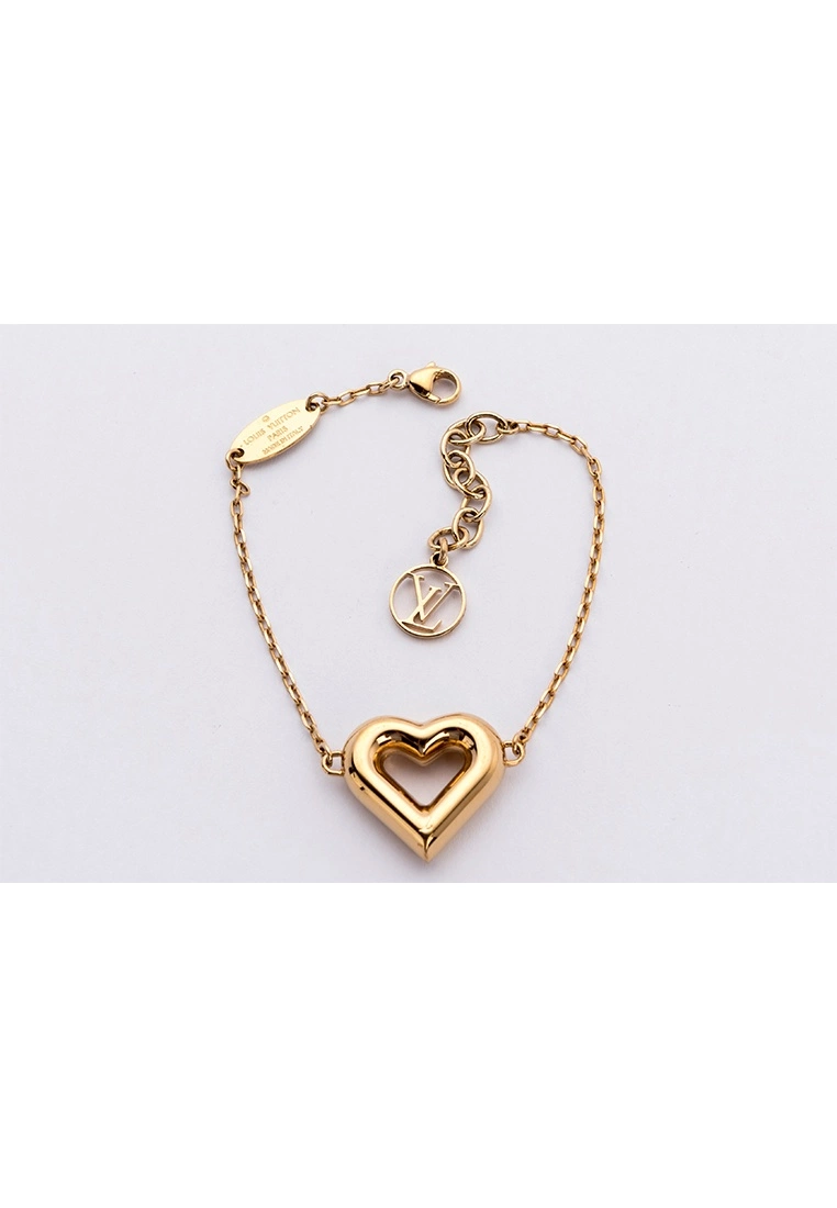 Louis Vuitton V Bracelet Heart Shape features a gold-plated on the chain and Heart Shape on the charm. There is a LV logo and engraved M61143. Style with this beautiful bracelet no matter in day or night. This item is in a very good condition, shows little to no signs of use. The pictures show exactly the items you will get.