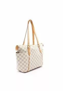 Pre-loved LOUIS VUITTON Totally PM white checkered Shoulder Bag Tote Bag PVC Genuine Leather white