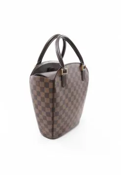 Pre-loved LOUIS VUITTON Sarria Horizontal Black checkerboard grid Handbag PVC Genuine Leather Brown