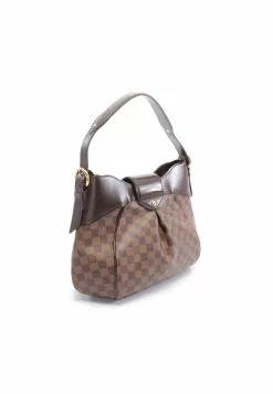 Pre-loved LOUIS VUITTON Sistina MM Black checkerboard grid Shoulder Bag PVC Genuine Leather Brown