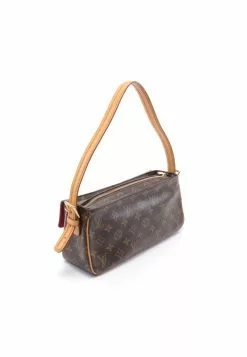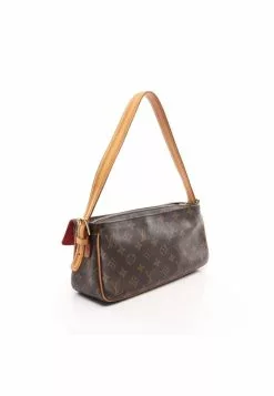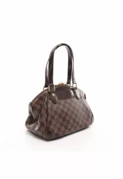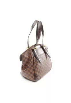 Pre-loved LOUIS VUITTON Verona PM Black checkerboard grid Shoulder Bag PVC Genuine Leather Brown