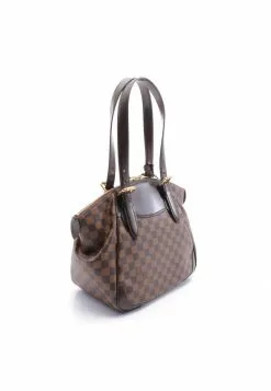 Pre-loved LOUIS VUITTON Verona MM Black checkerboard grid Shoulder Bag PVC Genuine Leather Brown