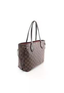 Pre-loved LOUIS VUITTON Neverfull MM white checkered Shoulder Bag Tote Bag PVC Genuine Leather white
