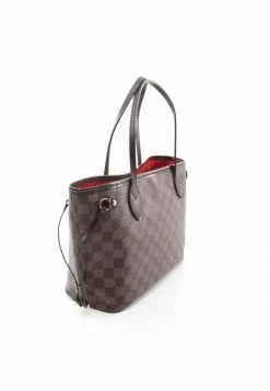 Pre-loved LOUIS VUITTON Neverfull PM Black Checkered Handbag Tote Bag PVC Genuine Leather Brown